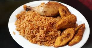 16. White Rice & Fried Plantain served with Fried Stew (ata dindin) Chicken