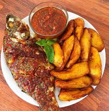 1. Yummy Grilled Tilapia Whole Fish Served with Fried Plantain and Chilli Sauce